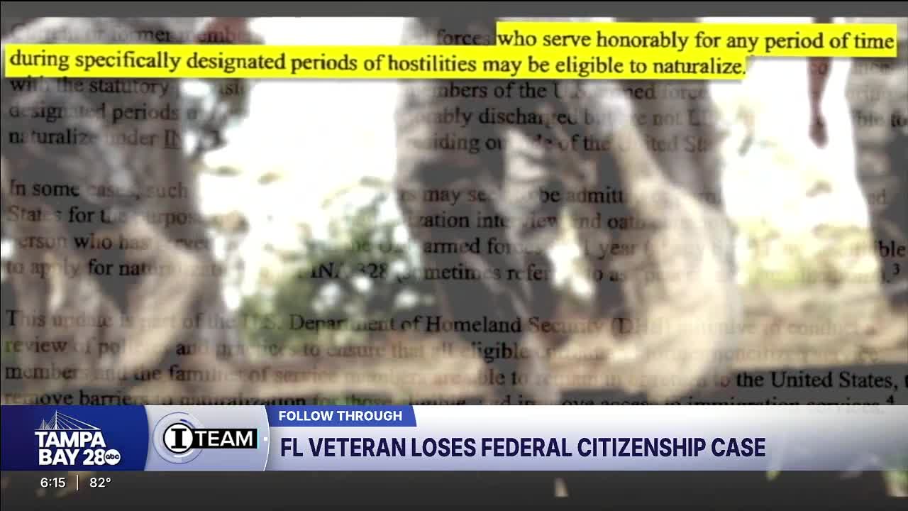TAMPA, Fla. — A Florida veteran who served in the U.S. Marines during the Persian Gulf War has lost his federal court case in his decade-long fight for U.S. citizenship — and now faces deportation to a country that may no longer claim him.