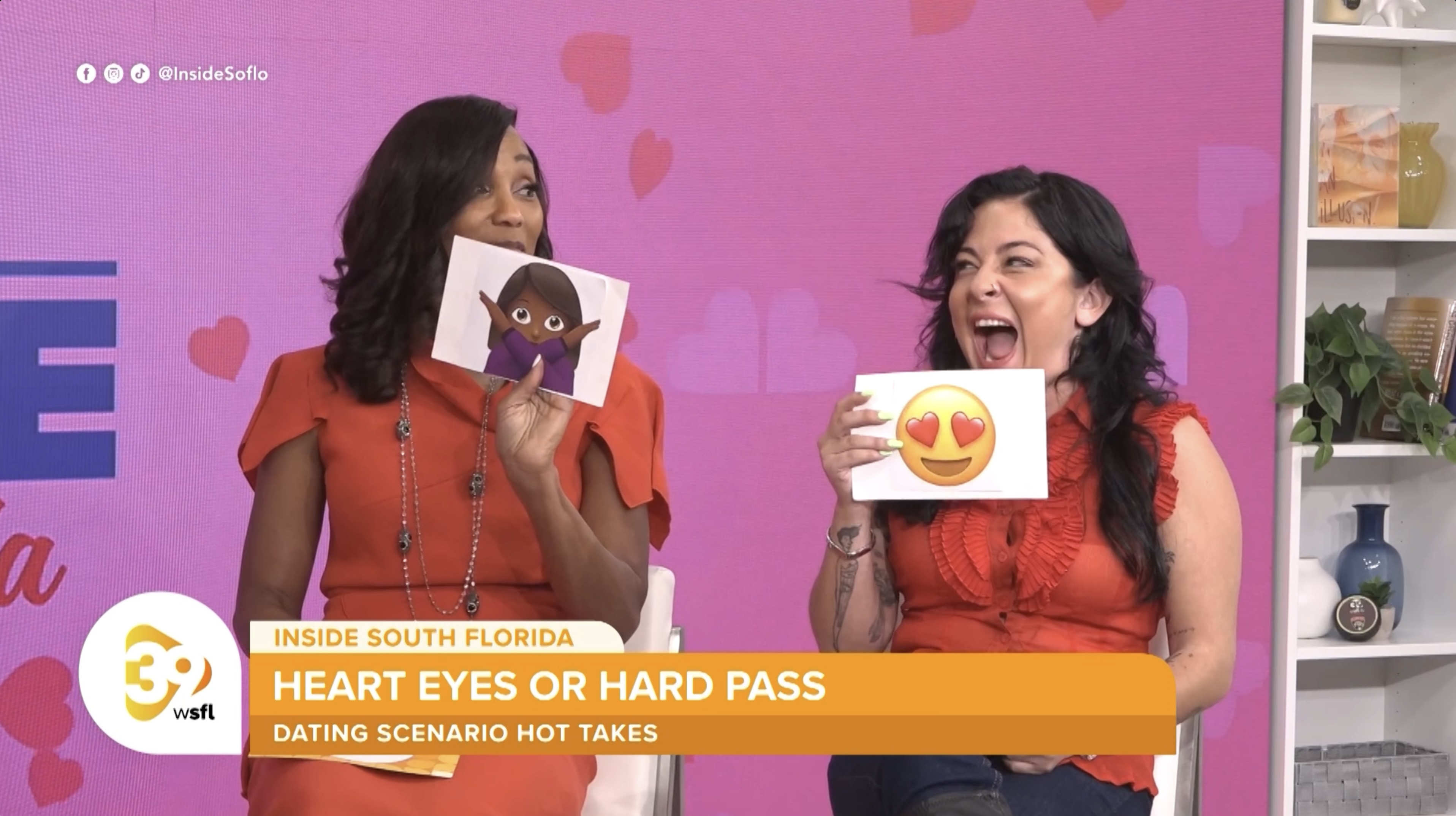 Dr. Jacquie Del Rosario, known as "America's marriage coach," and Miami comedian Brittany Brave participated in a "heart eyes or hard pass" dating game to evaluate common Valentine's Day relationship situations.