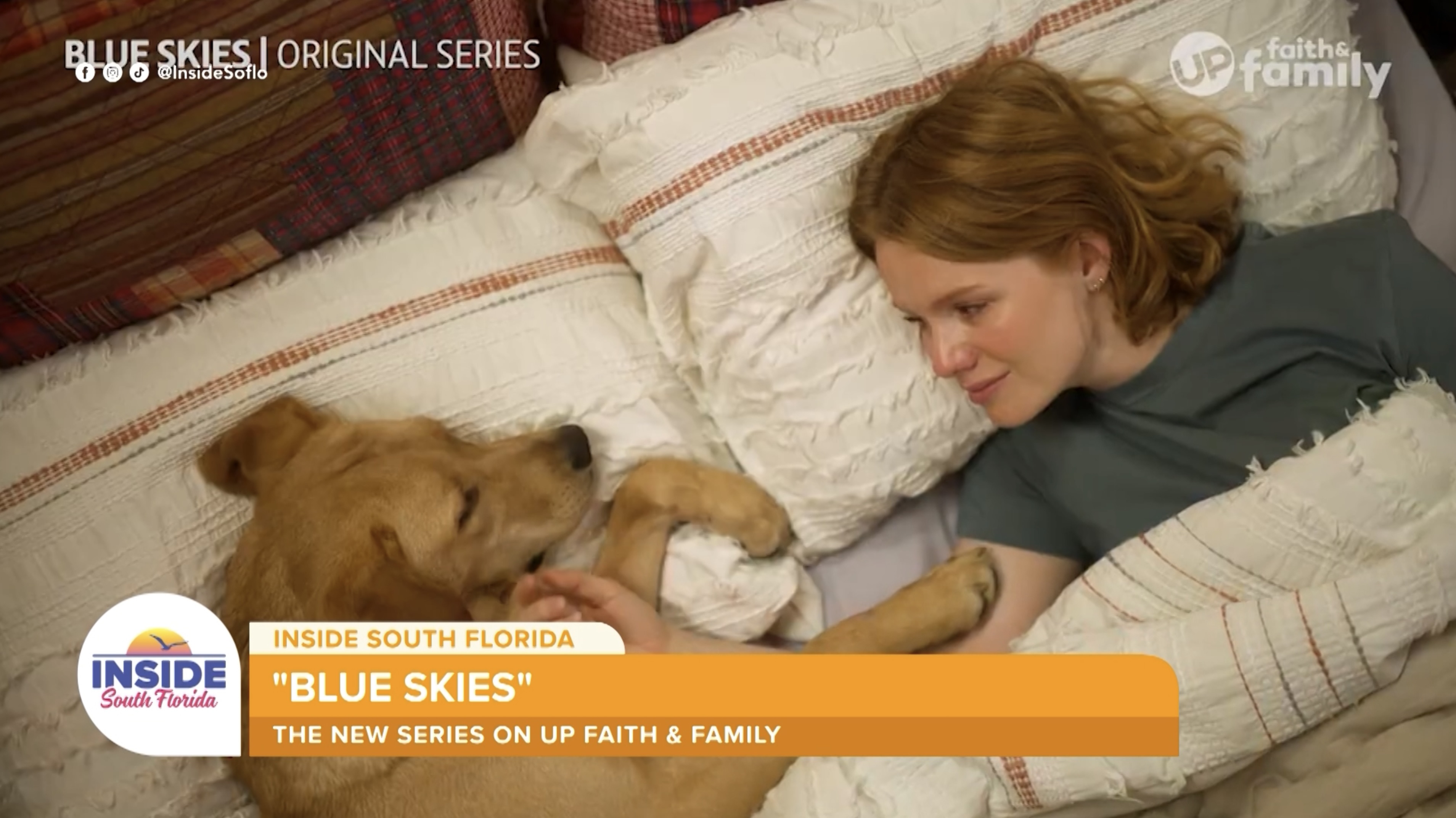 A new show called "Blue Skies" is coming to the Up Faith & Family channel, starring Scarlet Hunter as detective Jodi Larson and Markian Tarasiuk as Ryan Miller, a childhood friend of Jodi's. The two stars spoke about their characters, their on-screen relationship, and what it was like working with the show's four-legged co-star.