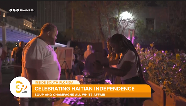 Co-founder Jones Pierre and cultural ambassador/host Mecca Grimo Marcelin promoted the seventh annual Soup and Champagne event celebrating Haitian Independence Day at Nomi Village in North Miami on January 1st.